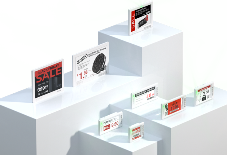 L'etichetta elettronica da scaffale è un visualizzatore tipicamente posizionato in sostituzione della tradizionale etichetta cartacea. Ogni etichetta elettronica è collegata al database informatico tramite rete wireless e visualizza le ultime informazioni inserite con precisione in tempo reale.