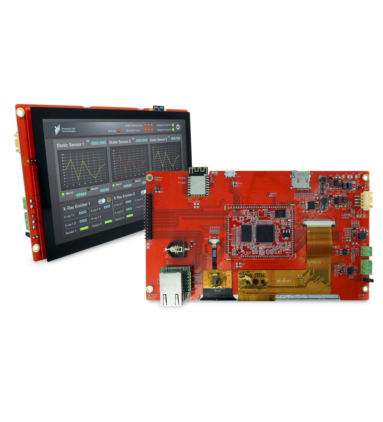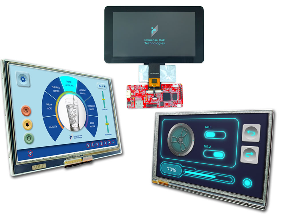 I moduli HMI Immense Oak Technologies supportano nativamente numerose I/O, come GPIO, PWM e ADC. Per le esigenze di comunicazione vengono fornite specifiche Extension Boards da installare sopra la scheda di controllo standard. Sono personalizzabili a seconda delle necessità del cliente e supportano Ethernet, WiFi, BT, RS-485, RS-232, CAN Bus e combinazioni di queste interfacce.