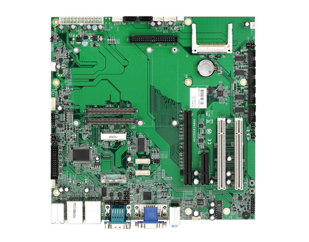 Intel® Atom™ D525 processor with Intel® ICH8M chipset | Two 204-pin SO-DIMM up to 4GB DDR3 667/800MHz SDRAM | Dual Display: VGA/DVI-D/LVDS | Two Realtek Gigabit Ethernet ports | 4 PCI, 1 Mini-PCIe, 4 ISA and 1 CF expansion slots | 3 SATA II, 6 COM and 8 USB 2.0