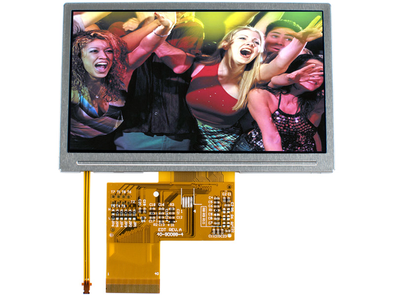 4,3" TFT display available in standard version, with RTP, CTP, high brightness, extended B/L life, wide viewing angle.