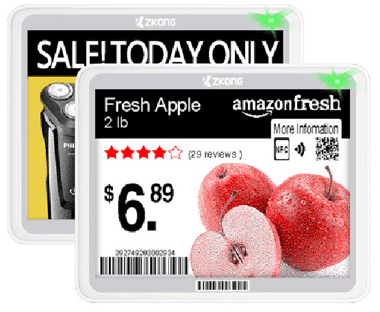 The electronic shelf label is a display typically positioned to replace the traditional paper label. Each electronic label is connected to the computer database via a wireless network and displays the latest information entered with precision in real time.