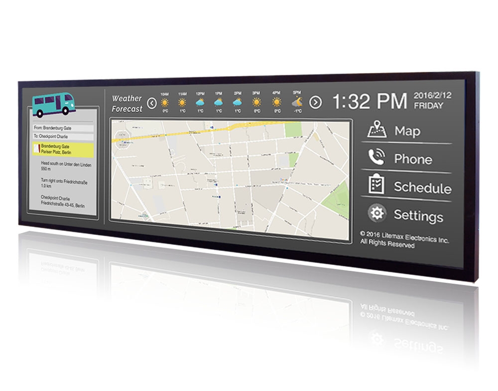 Suitable to cover a wide range of applications - advertising, digital signage, transportation, recreational, handheld devices, industrial - LiteMax' products are available in a wide range of sizes and features. Below is a selection of sunlight readable TFT displays, bar displays, motherboards and systems. Please contact us to find out the full range and find the model that best suits your needs.